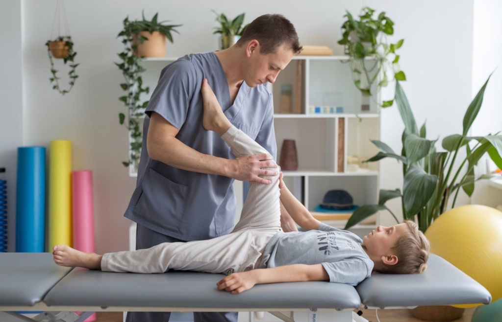 Pediatric physiotherapy focuses on improving movement and physical development in children who have developmental delays or neurological conditions.